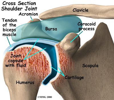 Your joints are beautifully designed to minimize stress and damage while you move. Nearly all joints of the body are synovial joints. Most joints where two bones come together and must move against one another to allow motion are synovial joints. Smooth, slick articular cartilage covers the end of the bones so the bones themselves don't rub together. Synovial fluid lubricates the joint and allows easier motion as well as helps to provide nutrition to the cartilage of the joint. Around the joint, connective tissue forms a watertight sac that is called the joint capsule. Small, fluid-filled sacs, called bursae, cushion parts of the joint where friction is particularly high and could causing rubbing on bones, muscles, or other soft tissue. Ligaments connect the bones together and tendons connect the muscles to bones.